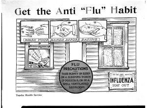 Kansas was fortunate to have Dr. Crumbine as secretary of the state Board of Health. Even before the influenza epidemic, Crumbine was known beyond the state’s borders for public health policy, including a “swat the fly” campaign to reduce insect-borne illnesses and another campaign to discourage the use of the common drinking cup on railroad cars. He also discouraged spitting on the sidewalk, and some cities started fining people for it.